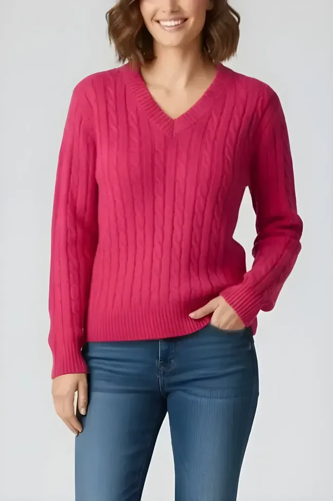 Pink Fitted V-Neck Sweater