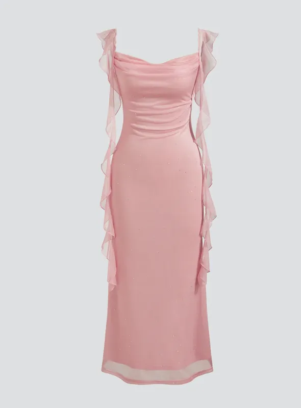 Pink Ruffled Knit Midi Dress