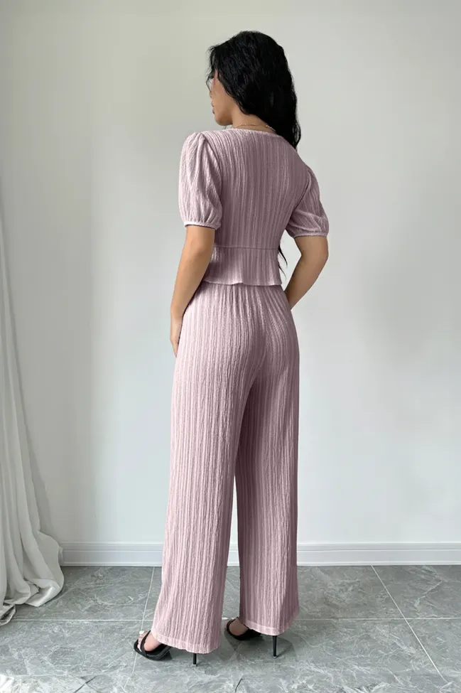 Pink Textured V-Neck Tie-Up Co-Ord Set