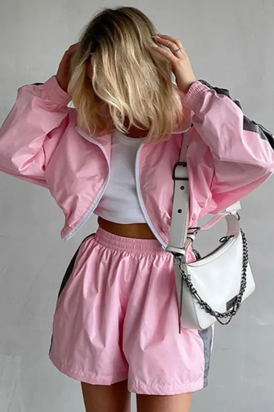 Pink Zip Collar Crop Co-Ords