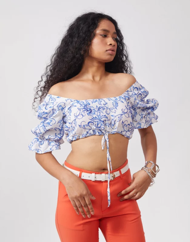 Printed Puff Sleeve Crop Top