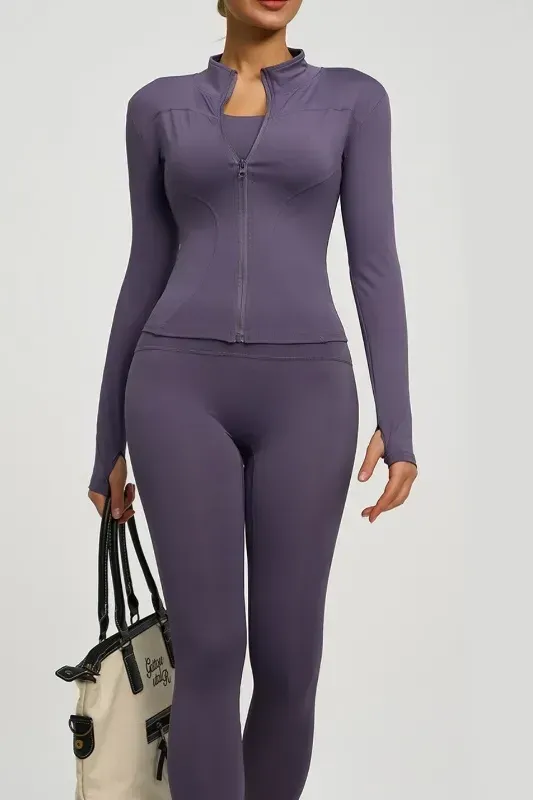 Purple Zip Collar Sports Jacket
