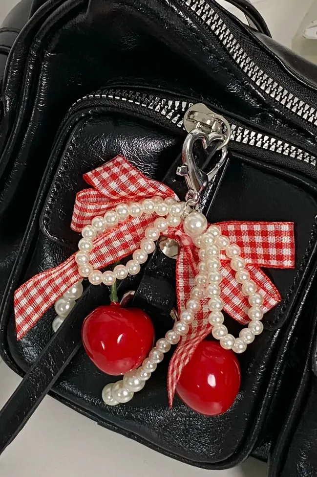 Red Bow Gingham Bag Charm