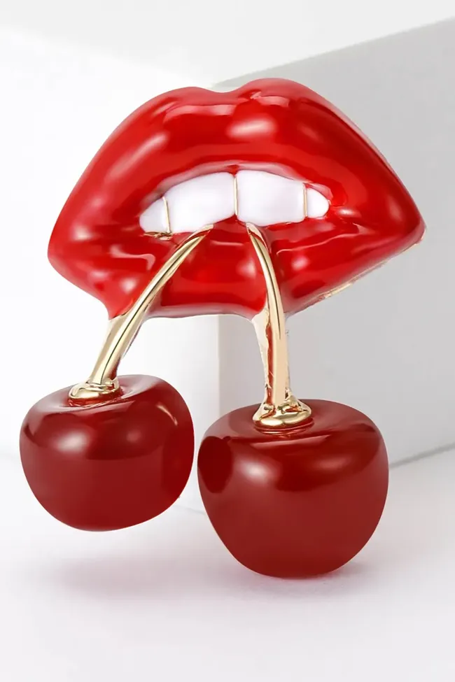 Red Cherry Lip Brooch