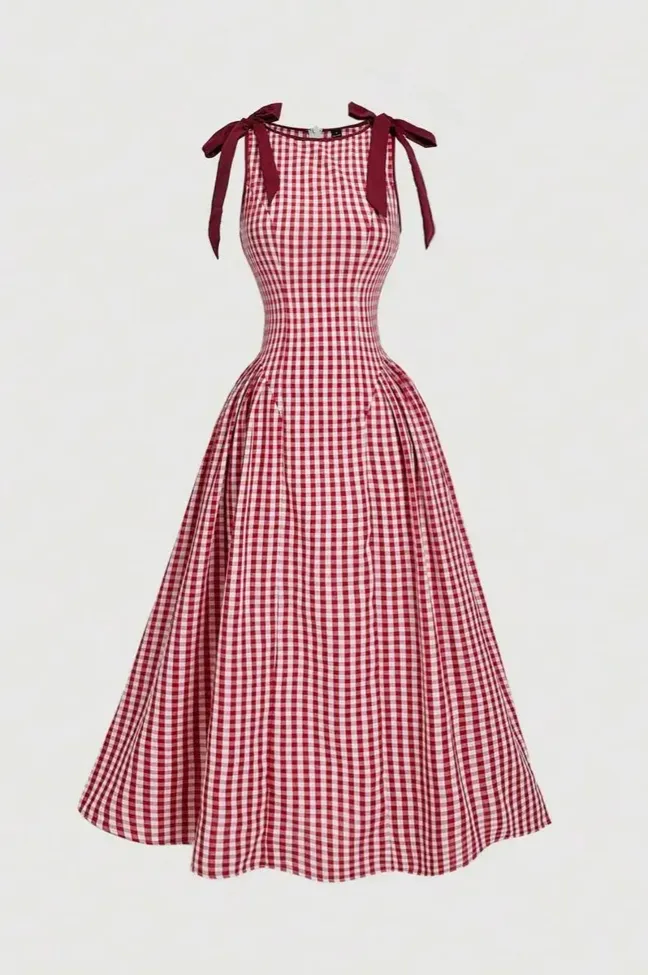 Red Gingham Bow Maxi Dress