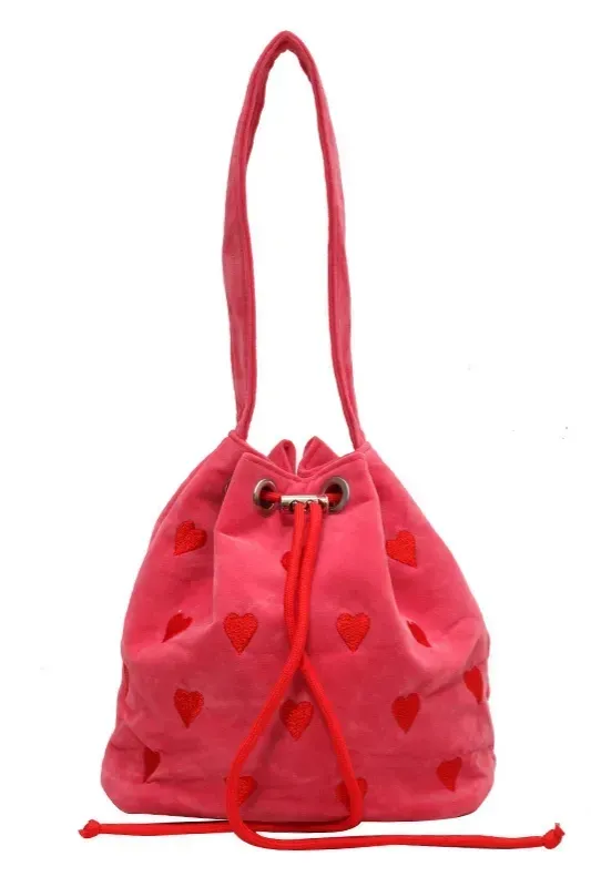 Red Heart Print Bucket Bag