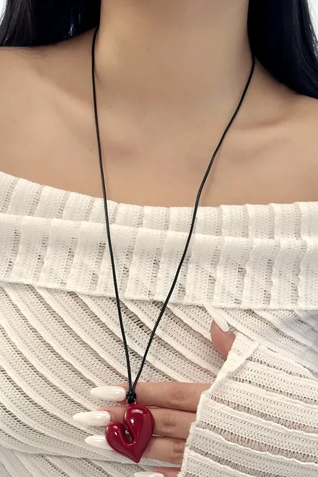Red Heart Statement Pendant Necklace