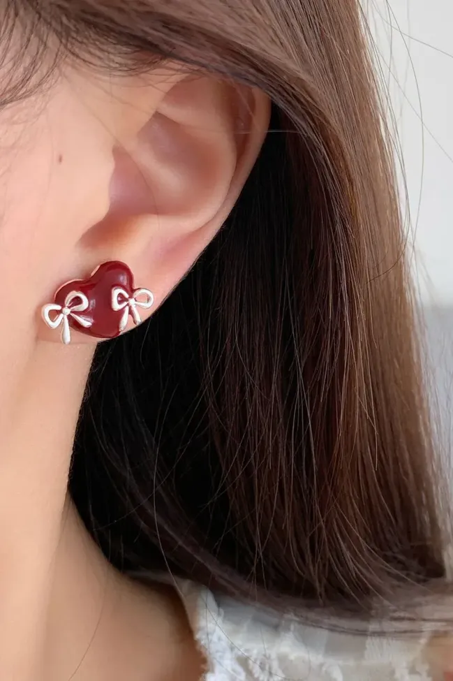 Red Heart Stud Earrings