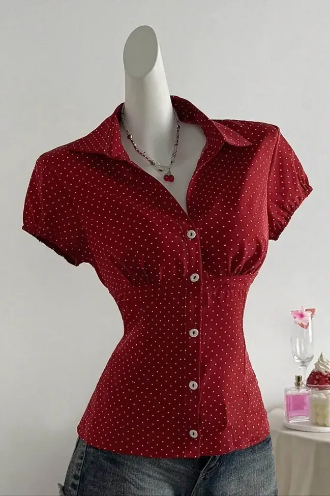 Red Polka Dot Fitted Shirt
