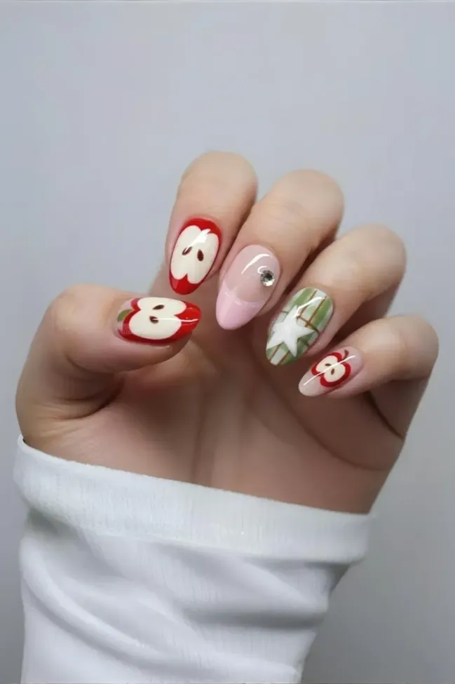 Red Printed Press On Nails