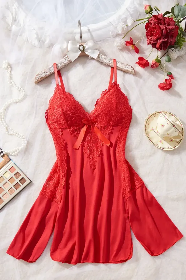 Red Ribbon V-Neck Babydoll