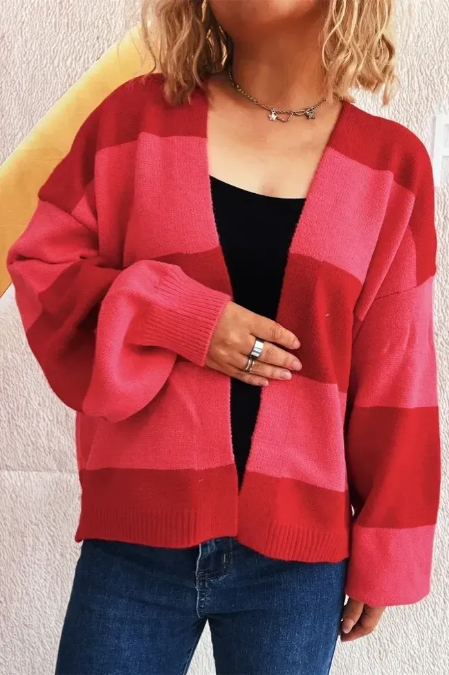 Red Striped V-Neck Cardigan