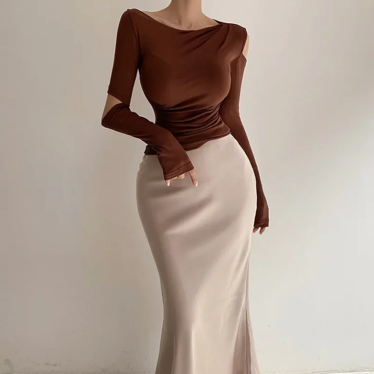 Ruffled Silk Knit Fitted Top