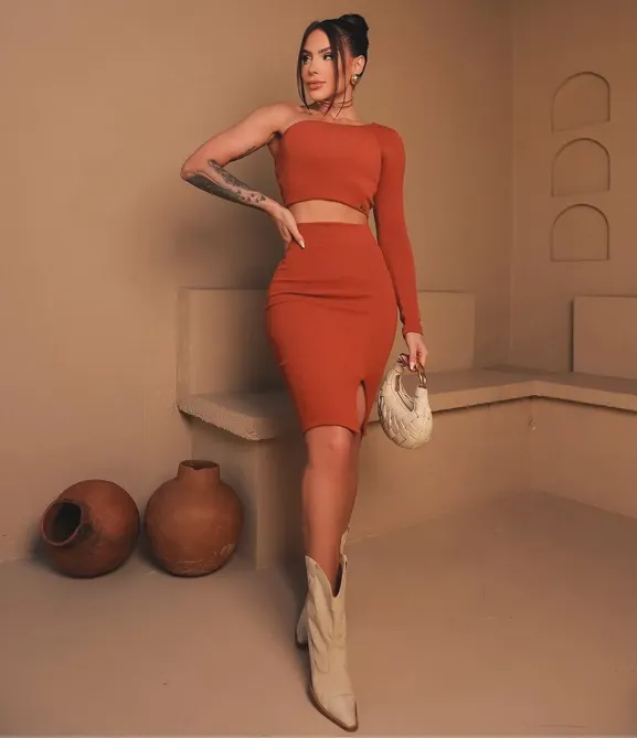 Rust One Shoulder Fitted Co Ord Set