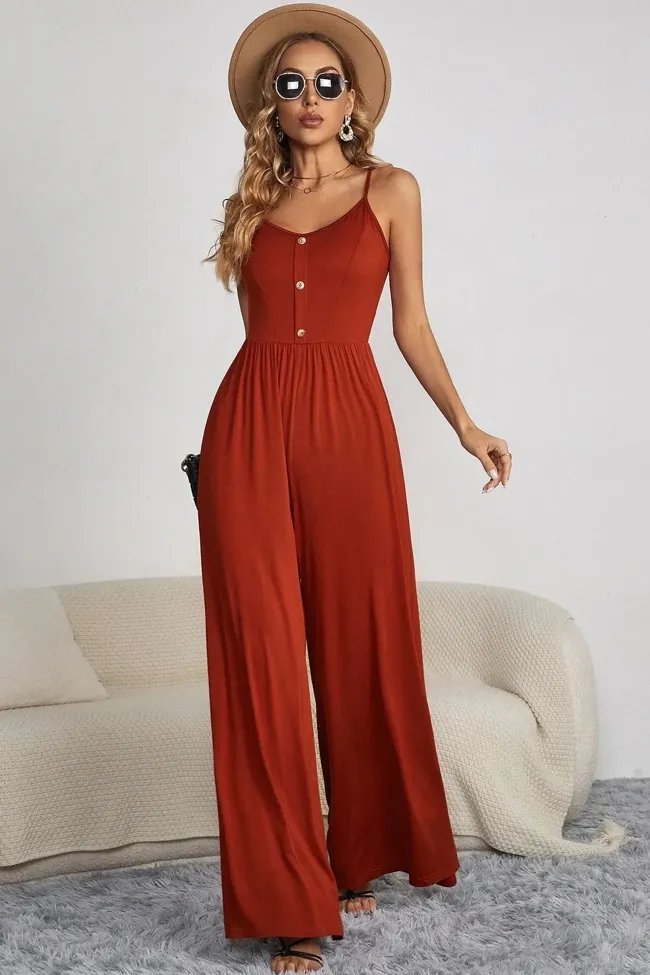 Rust Solid Wide Leg Jumpsuit
