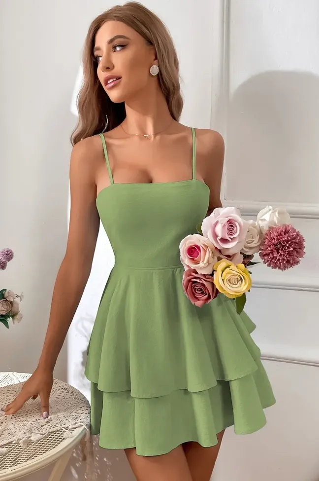 Sage Tiered Square Neck Mini Dress