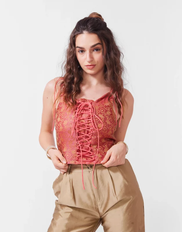 Shoulder Tie Drawstring Corset Top
