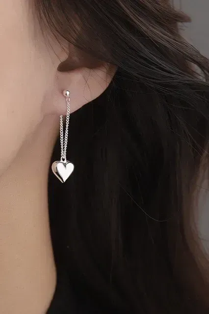 Silver Imitation Heart Dangle Earrings