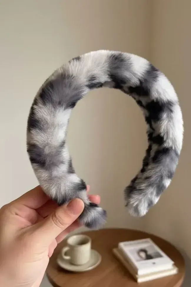 White Animal Print Fur Hair Band