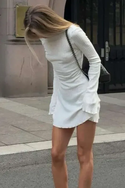 White Backless Round Neck Mini Dress