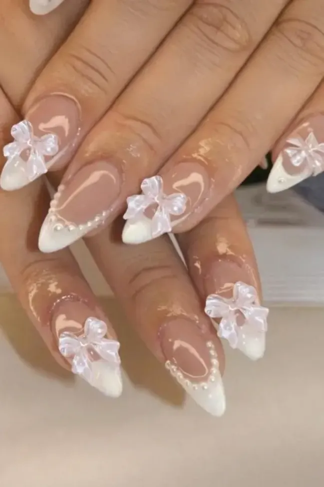 White Bow Embellished Press-On Nail Set