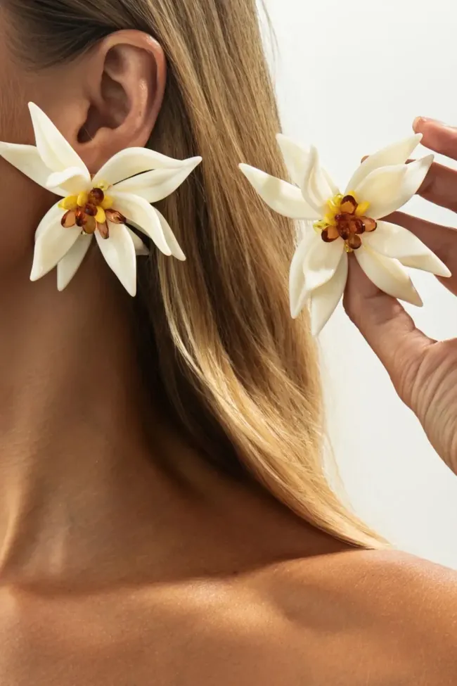 White Floral Petal Earrings