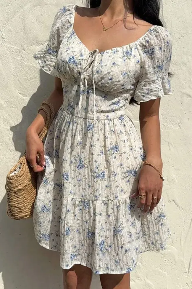 White Floral Tie-Up Mini Dress