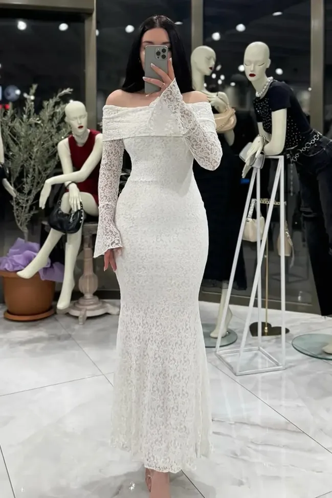 White Lace Bodycon Maxi Dress