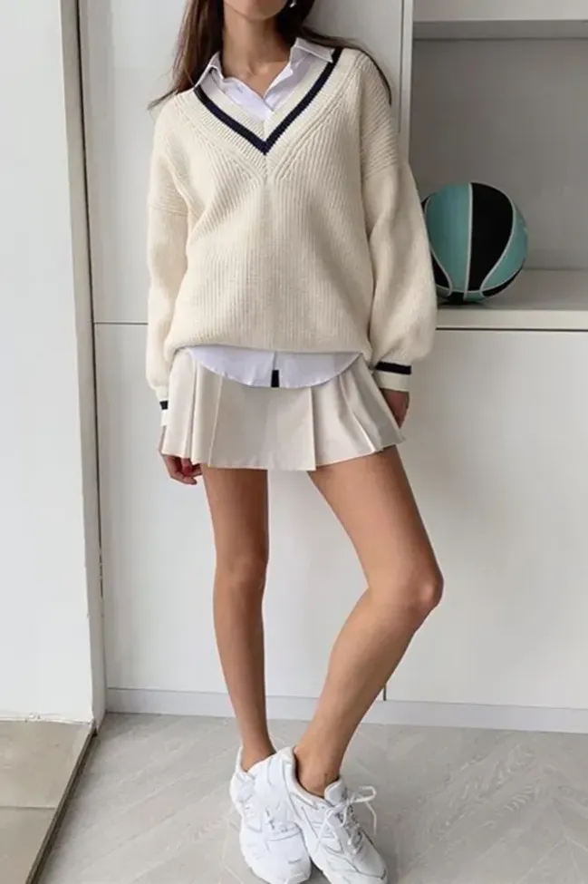 White Oversized V-Neck Sweater
