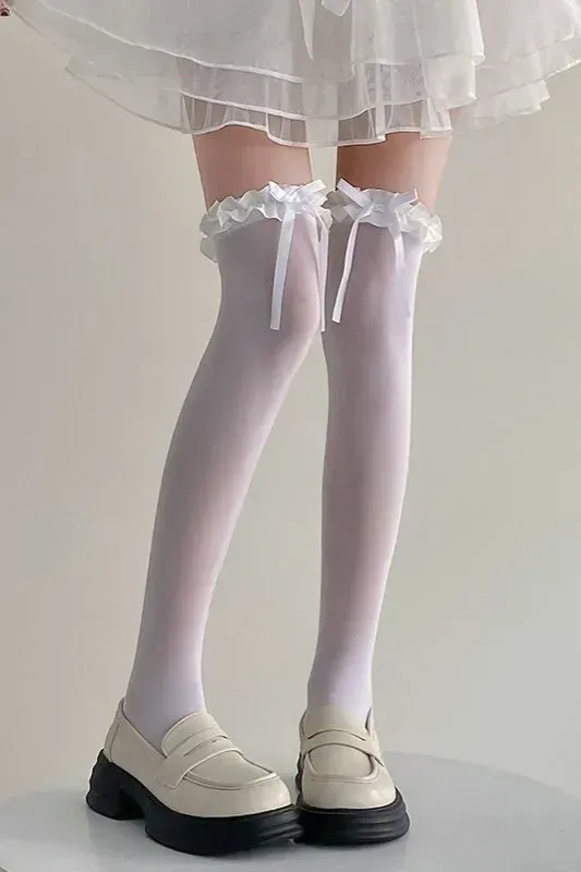 White Ruffled Bow Stockings