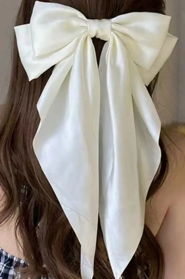 White Satin Bow Hair Clip