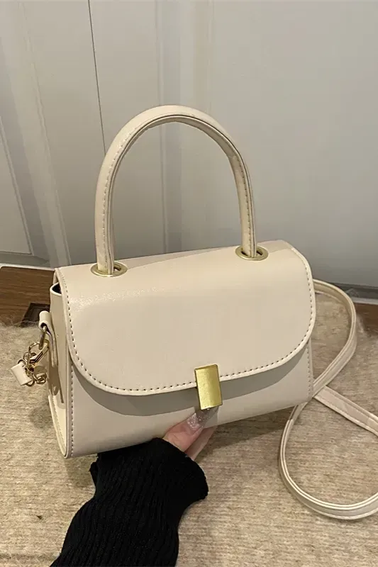 White Solid Pu Satchel Bag