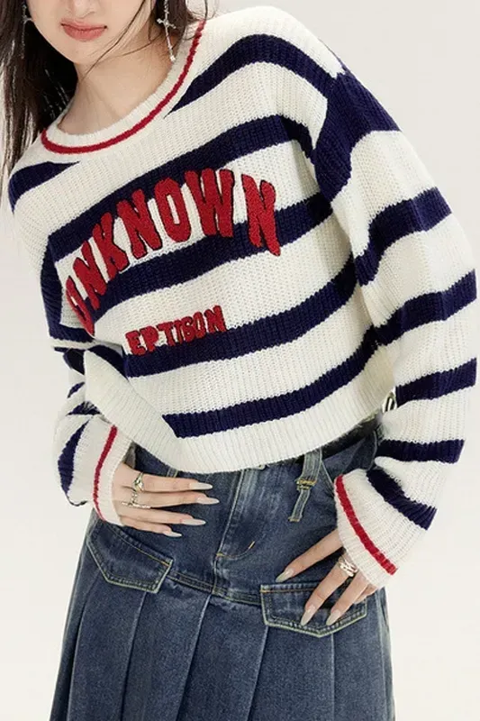 White Striped Crew Neck Sweater