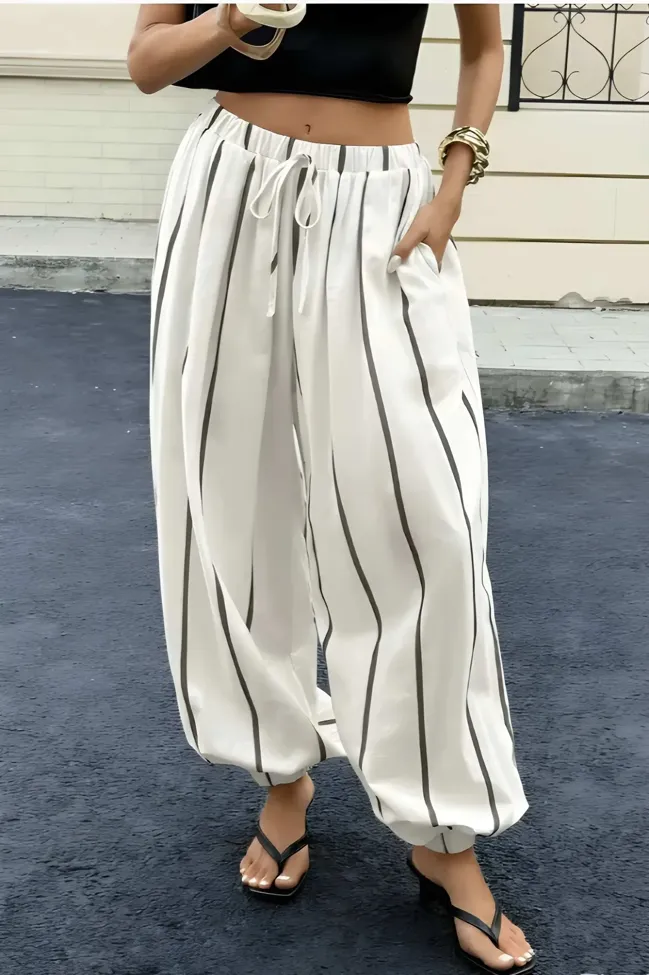 White Striped Mid-Rise Pants