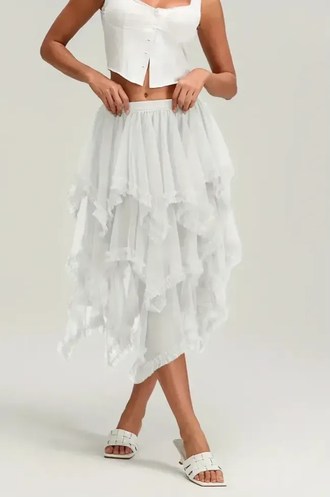 White Tiered Layered Maxi Skirt