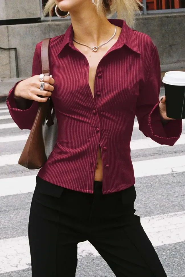 Wine Pinstripe Button Down Shirt