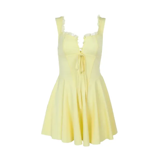 Yellow Solid Pleated Mini Dress