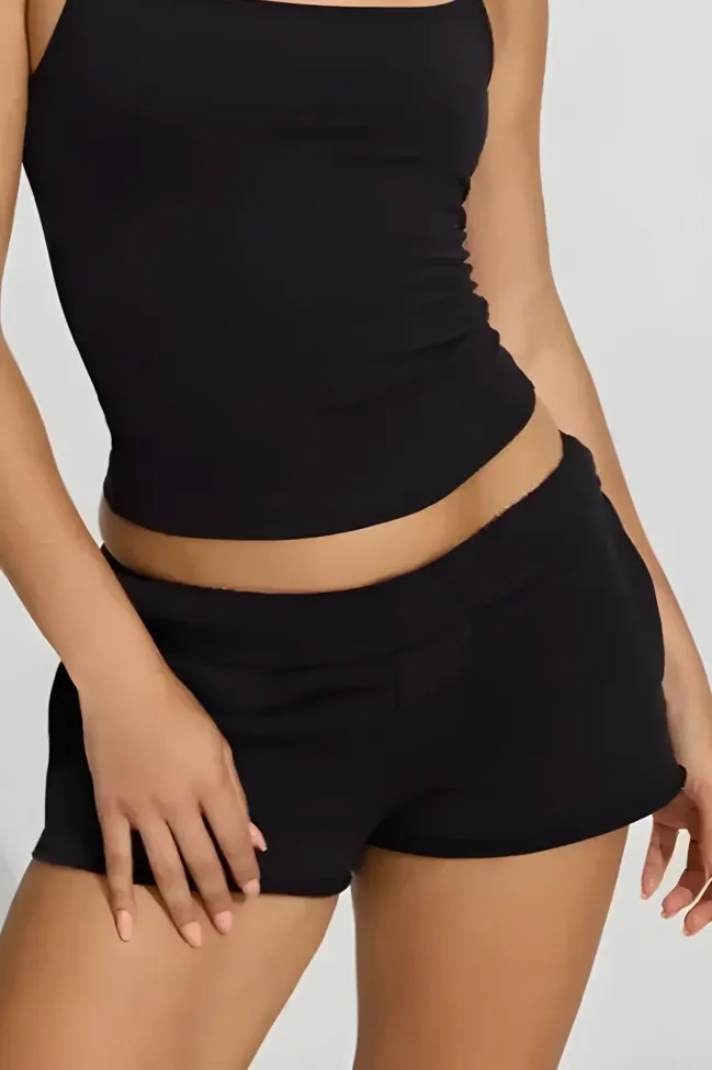 Black Mid-Rise Solid Shorts