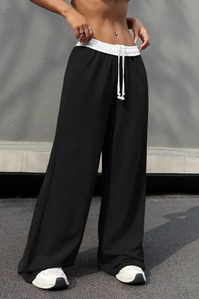Black Mid Rise Tie-Up Trackpants