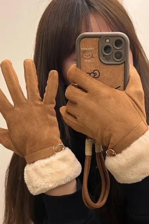Brown Solid Winter Gloves