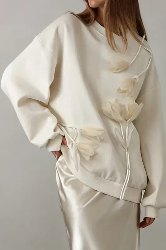 Cream Applique Oversized Sweatshirt