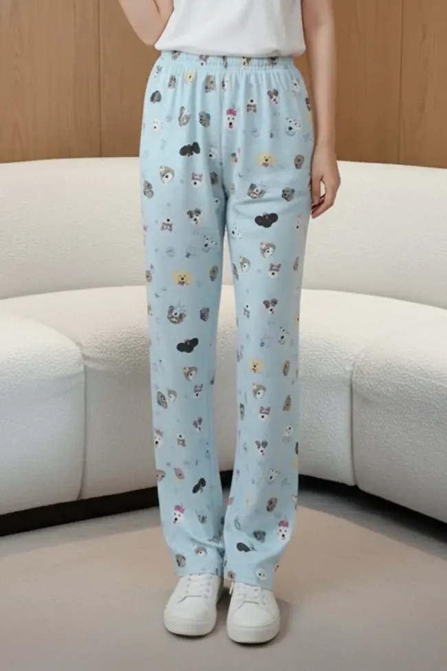 Light Blue Graphic Mid Rise Pants