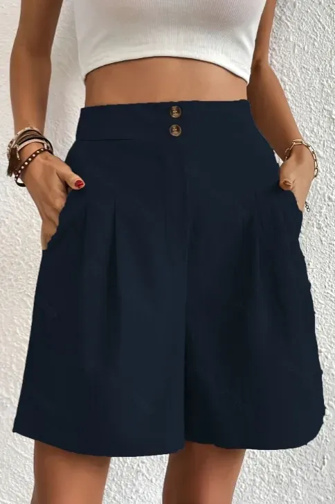 Navy Blue High Rise Buttoned Shorts